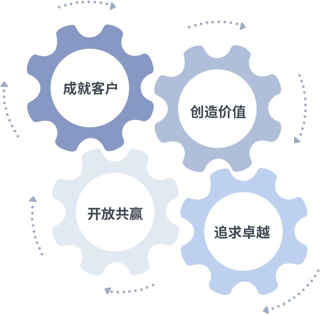 成就客户是一切决策的出发点,创造价值是衡量所有工作的标准,追求卓越是3044am永利做事做人的态度,开放共赢是3044am永利的格局也是最终的结果。价值观的齿轮环环相扣,推动着组织里的每个人不断向前。